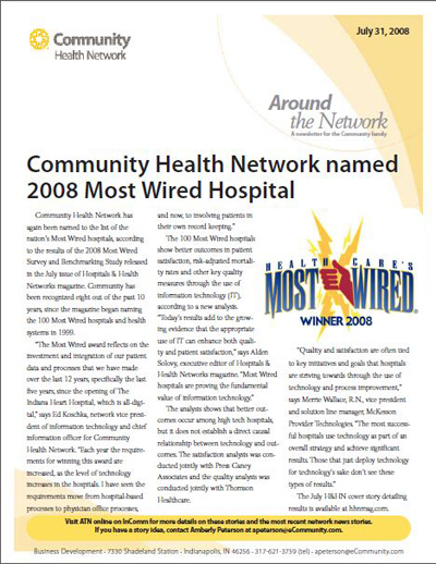 Community Health Network’s employee newsletter, Around the Network (ATN) was produced and printed every other week. The print edition was a compilation of the stories that appeared on the intranet blog, which was updated daily.